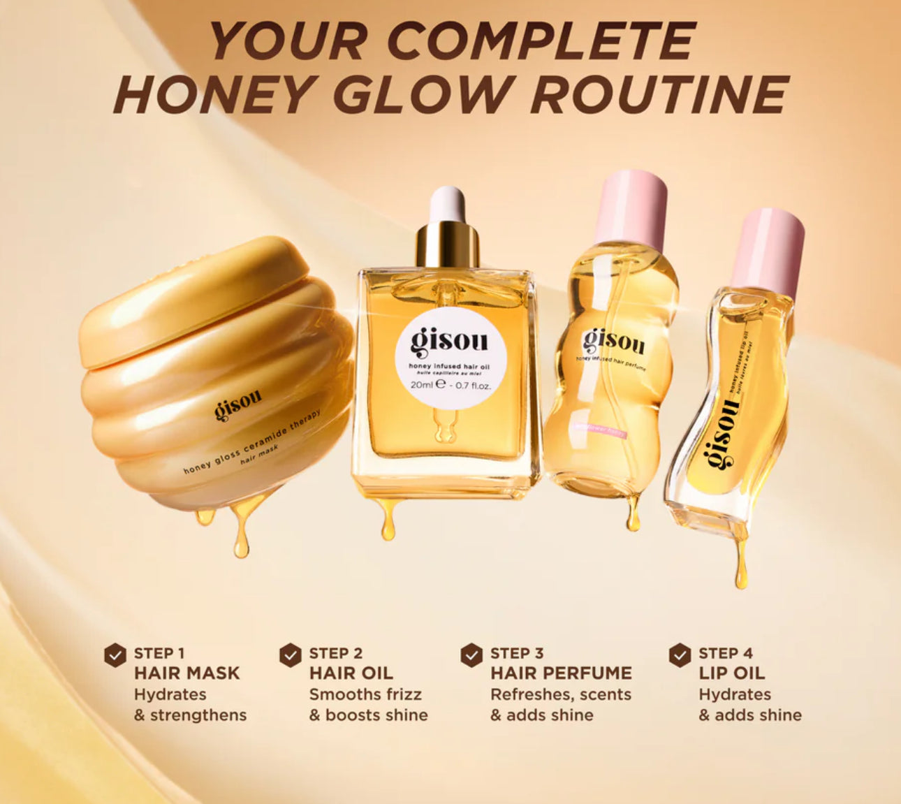 مجموعة متكاملة تضم أشهر منتجات Gisou، مدعومة بعسل Mirsalehi لمنح شعرك وشفاهك ترطيباً عميقاً ولمعاناً صحيّاً.