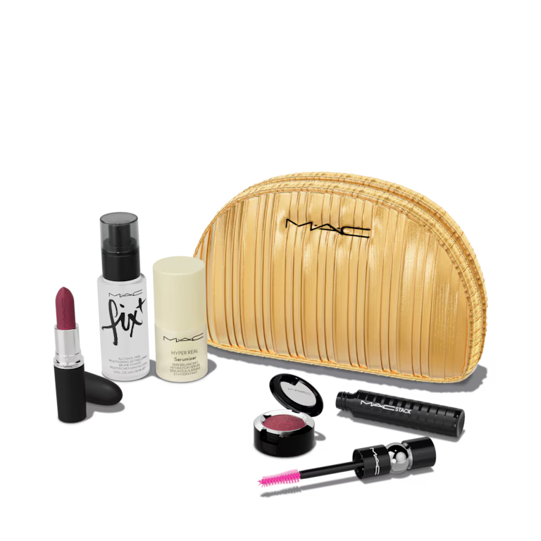 استعدي للتألق مع هذه المجموعة الفاخرة من MAC، التي تضم 5 من أكثر المنتجات مبيعًا للعيون، الشفاه والبشرة، بقيمة رائعة. تأتي المجموعة في حقيبة أنيقة حصرية لموسم العطلات بتصميم ذهبي فاخر.