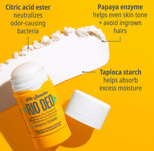 يمنحك Rio Deo شعورًا بالانتعاش ورائحة رائعة طوال اليوم. يتميز بتركيبة ناعمة سهلة الانزلاق، تقضي على الروائح من خلال معادلة البكتيريا، مع تهدئة البشرة الحساسة تحت الإبط. تساعد إنزيمات البابايا على توحيد لون البشرة والحد من نمو الشعر تحت الجلد. معطّر بعطر Cheirosa ‘62 بنفحات دافئة ومشرقة من الفستق والكراميل المملّح